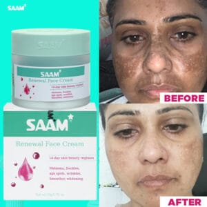 Improve dark spots condition with SAAM Renewal Face Cream, your key to unlocking a radiant, even-toned complexion. Our gentle and effective formula opens power of high-quality ingredients to brighten and even skin tone, revealing a natural glow.